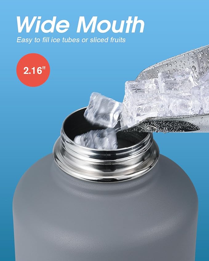 - Going Green: 64 oz Insulated Water Bottle is built with 18/8 (304) stainless steel that's BPA-free, reusable, and safe for all. It's rust-proof, and free from oder retain. Liquid can be fresh in its best taste for a whole day.