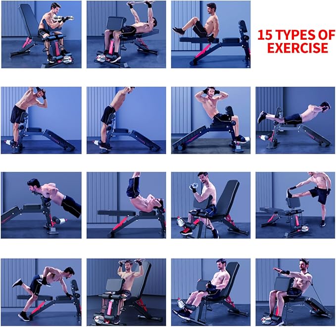 - [Adjustable dumbbell bench]: The dumbbell bench is designed with 7 backrest cushion positions and 3 stopper adjustments, easy to adjust, one second to complete the adjustment. You can switch to the right position at will during the exercise, effectively improve the effect and time of the whole body exercise and increase the muscle shaping effect