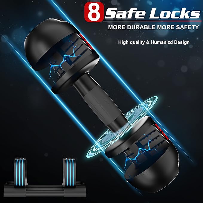 Adjustable Dumbbell,22LBS 44LBS 52LBS Dumbbell Set with Tray for Fitness, Fast Adjust Weight by Turning Anti-Slip Handle, Safety with 8 Lock Slots, Suitable for Men and Women