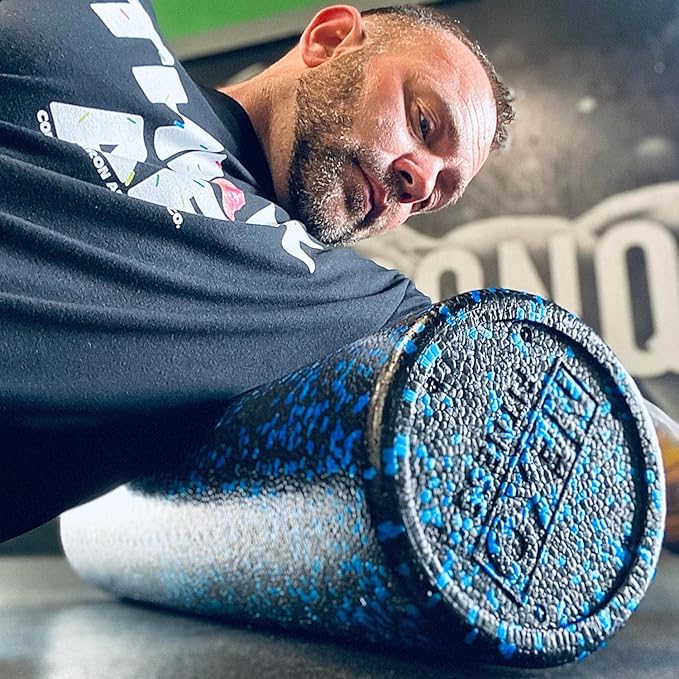 High-Density Round Foam Roller for Muscle Soreness Recovery, Exercise, Massage - 18", 24", 36" Blue Fleck (36 Inch)