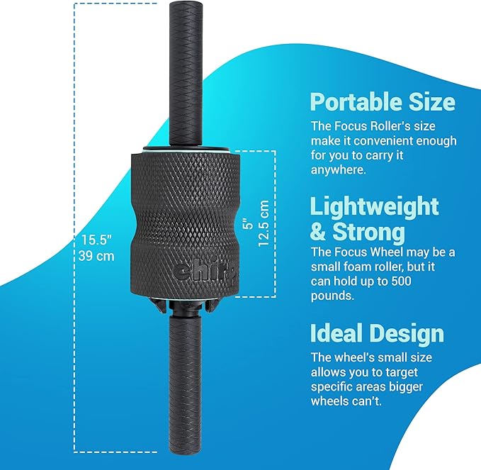 - LIGHTWEIGHT AND STRONG: The Focus Wheel may be a small foam roller, but it can hold up to 500 pounds. You can use it for myofascial release to loosen stiff muscles. Combined with the Focus Handle, you can go from myofascial release to deep tissue massage to alleviate muscle soreness and tension headaches.