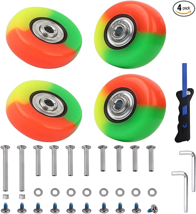 - 【Elastic Mute Bearings Wheels】Made of Poly urethane Rubber Integrated Perfusion and Built in Metal Dual Ball Bearings,Grip and Roll Smoothly,Strong load-bearing,Rotating Flexible,Silent and Wear resistant,Also Suit for Inline Roller Skating.