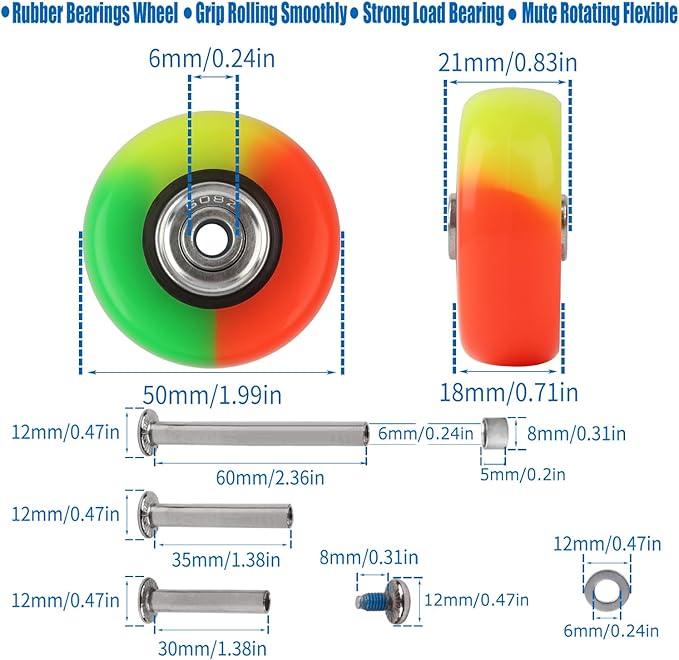 - 【Suitcase Wheels Repair Sets】4Pcs Rubber Replacement Rollers,Built-in Ball Bearings-Inner Diameter 0.24in/6mm&Total Width 0.8in/21mm,3 Size Matching Axles-axle body length1.18in/30mm-1.38in/35mm-2.36in/60mm,Customized Hacksaw Short Blade to Remove Worn Wheels Rivet.