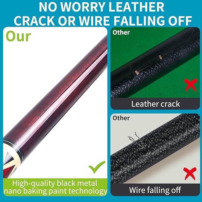 • ?…【HIGH PERFORMANCE POO CUE??These Pool cue sticks are made of canadian Maple Wood,which is firm and durable, we have chosen the best quality for the pool stick and the pool cue tips durability. You will receive pool cues set of 4.