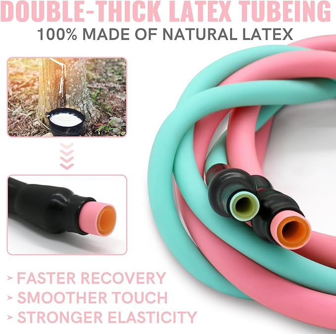 - THE LATEST UPGRADED 105LBS RESISTANCE BANDS: Our resistance bands for working out are made of 100% healthy and environmentally friendly natural latex material, which have smoother touch, stronger resistance and better wear resistance! The exercise bands resistance have 5 different strength levels, corresponding to 5 different colors (yellow 5 lbs, green 15 lbs, red 20 lbs, blue 30 lbs, black 35 lbs), which can be used alone or stacked in any combination to a maximum equivalent of 150 lbs