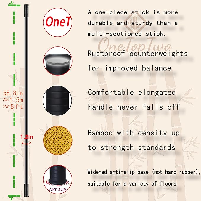 - Our Advantages:Bamboo originates from 28 degrees north latitude, the unique hilly terrain and climate is the most suitable for the growth of bamboo, we are strict in the selection of materials, the material is abundant.Can be used as a pilates bar, yoga dowel, stretching bar, fitness bar or shoulder movement bar.
