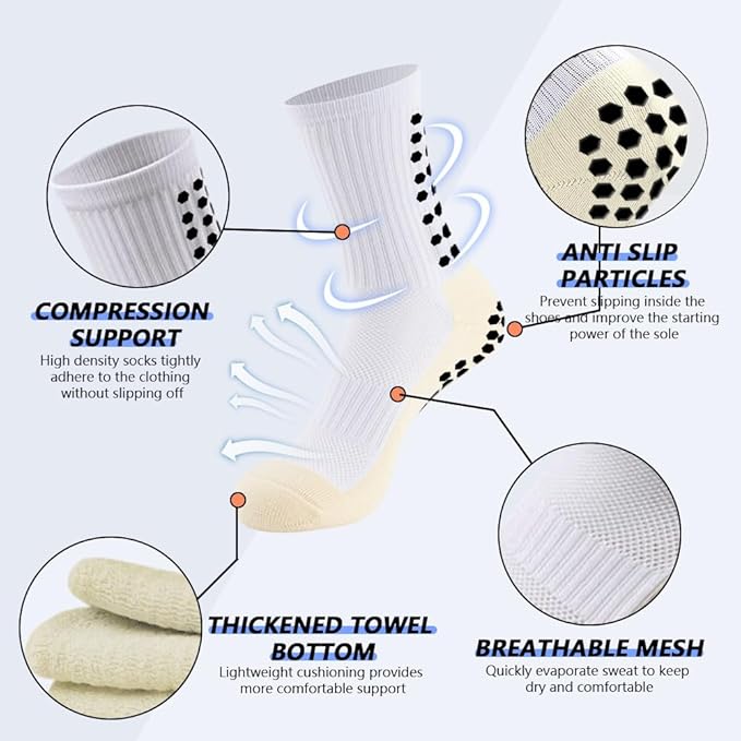 - [Excellent anti-slip performance] Our men's non-slip football socks have a new and unique design, and a large number of non-slip rubber sheets are added to the bottom of the socks, which greatly reduces the possibility of slipping on the soles of your feet when you wear our socks for sports, enabling you to perform faster Start and change direction to give full play to your strengths on the field