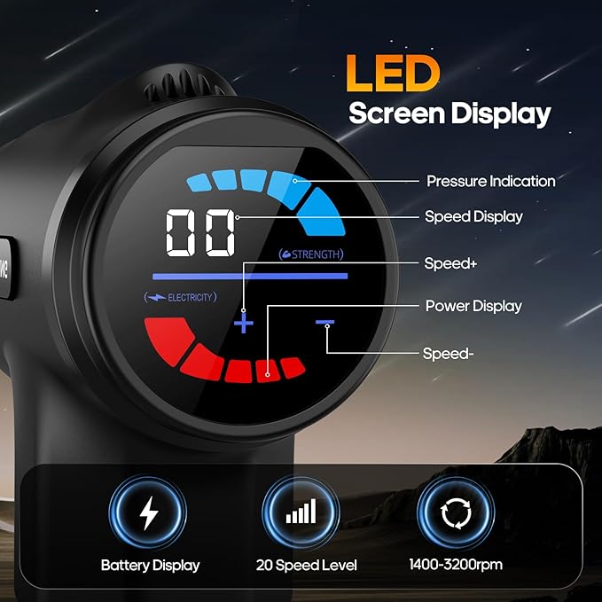- High-Quality Quiet Motor: This massage gun uses a high-quality, quiet motor with a speed range of 1400-3200 rpm. The quiet operation allows you to enjoy a professional-grade massage at home, in the office, or on the go without disturbing others