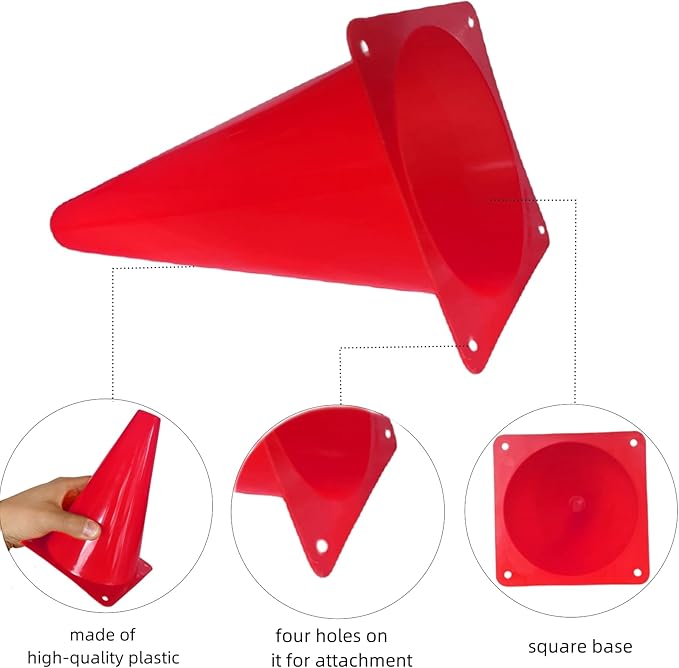 • Compact Storage: cones are hollow in the middle, when not in use is stacked in a mesh drawstring bag, easy storage and transportation, they can be easily transported to different locations, such as parks, gyms, schools, and sports fields.
