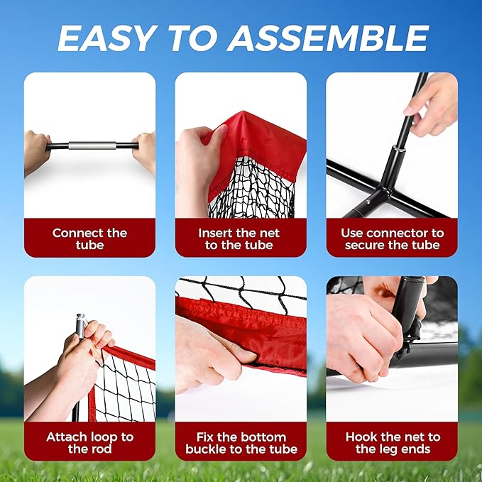 - 【EASY SETUP & TAKE DOWN 】: The baseball net sets up in less than 5 minutes; requires no tools; comes with ground stakes for added stability to withstand even the hardest hit balls; is lightweight and easy to carry and place during practice; and can be disassembled and packed into a carrying bag for long term storage and carrying anywhere