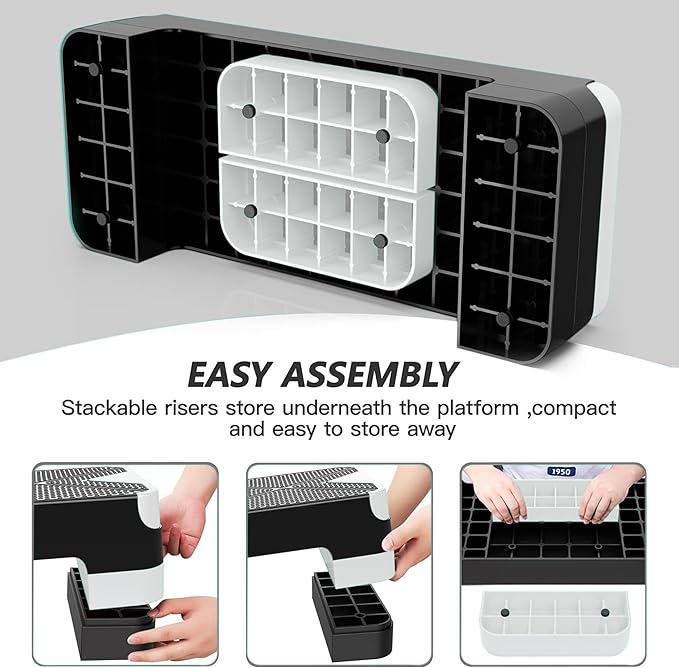 - LIGHTWEIGHT & COMPACT: GYMMAGE Step Platform is light in weight that you can carry it anywhere like office, gym, studio or outdoors. The stackable risers can be easily stored underneath the platform that you can store it under your bed, sofa or corner. Just step to a healthy life from now
