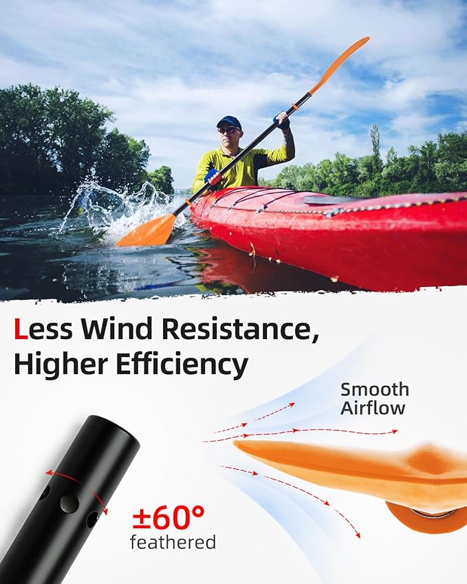 • 【LIGHTWEIGHT AND DURABLE 】The aluminum alloy shaft is known for its strength and ability to withstand the wear and tear of frequent use. In addition to its durability, the aluminum alloy shaft also offers better performance and more efficient paddling. PP blades are lightweight and indestructible blades offer flexibility and efficiency, making it easier for paddlers to navigate through the water with ease.
