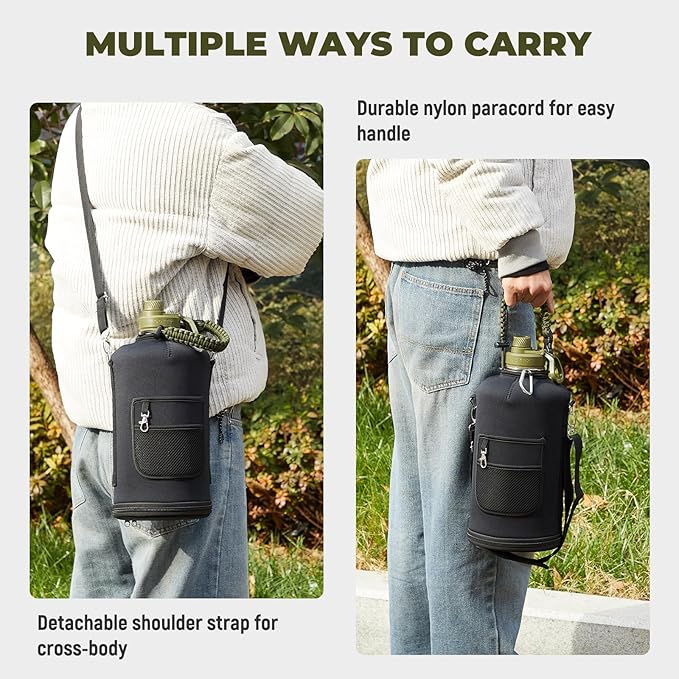 - What You'll Get: Buy 2 pack one gallon insulated water bottle, independent carton packaging๏ผget double accessories (Carrying Pouch, Straw Lid with 2 Straws & Straw Brush, Spout Lid, Paracord Handle, Bottle Brush). We offer Continuous After-sales Service and 100% customer satisfaction against any leakage or insulation failure