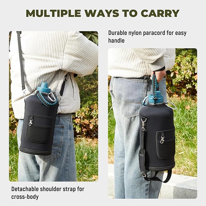- What You'll Get: Buy 2 pack one gallon insulated water bottle, independent carton packaging๏ผget double accessories (Carrying Pouch, Straw Lid with 2 Straws & Straw Brush, Spout Lid, Paracord Handle, Bottle Brush). We offer Continuous After-sales Service and 100% customer satisfaction against any leakage or insulation failure