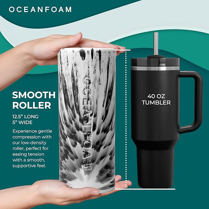 Oceanfoam Smooth Soft Foam Roller (Black Marbled) - Beginner, Travel Sized Low Density Foam Roller for Home & Gym, Physical Therapy, Back Pain, & Exercise - Yoga & Athletics (12.5" x 5")