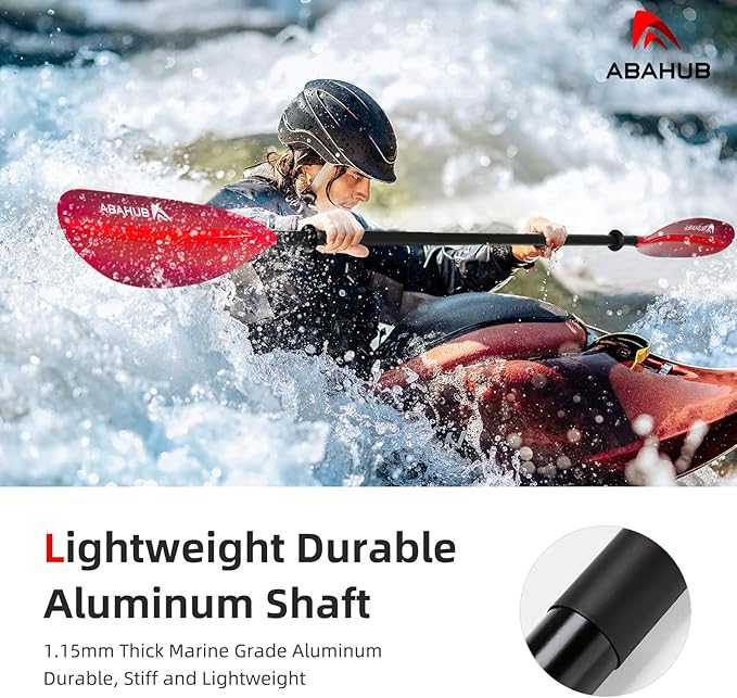 • MADE to LAST: Made of premium quality 1.15mm thick, 29mm diameter aluminum alloy shaft, and fiberglass reinforced polypropylene blades, total weighs 38oz (1075g). This kayak paddle is impact and erosion resistent, thus for great durability. It’s perfect for beginner and intermediate kayakers.