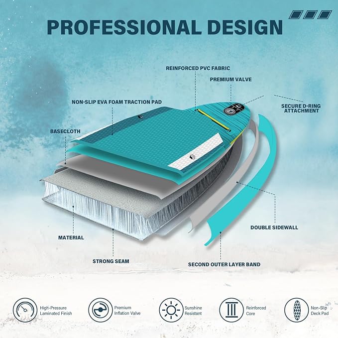 - Exceptional Durability:Our stand up paddle boards are made of high quality PVC material for a durable product. The paddle board measures 11'ร34"ร6", can hold up to 440 pounds, has a wide design with a non-slip surface for superior stability and balance on the water, making it easy for paddlers of all skill levels to maintain control.