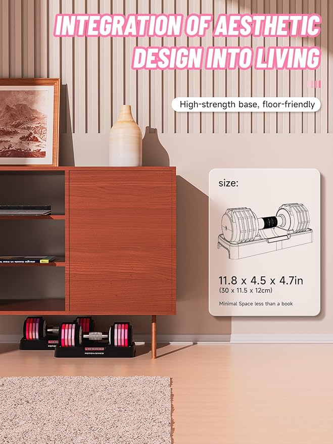 - đ„ăSPACE SAVINGăOur compact adjustable dumbbells are specially designed to save 80% of storage space. Effortlessly meet your diverse needs with their easy-to-use and store functionality.