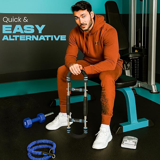 - 【MULTIFUNCTIONAL】This chest workout trainer is versatile and its U-shape design stimulates your multiple muscle groups including biceps, triceps, deltoids, abs, wrists, chest, legs, back and shoulders, underscoring its versatile nature and exercise experience. Ideal for home, gym, office, traveling and outdoor workouts, helping you achieve an efficient and balanced strength training routine.