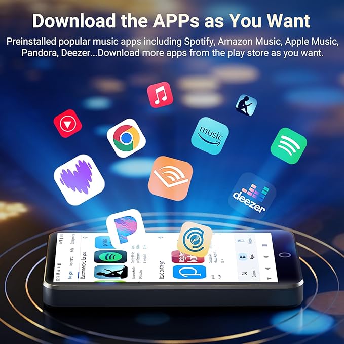 96GB MP3 Player with Bluetooth and WiFi, MECHEN Android 13 OS MP3 & MP4 Players with 4" Touchscreen and Speaker,Music Players with Spotify,Pandora, Audible, Amazon Music, Play Store