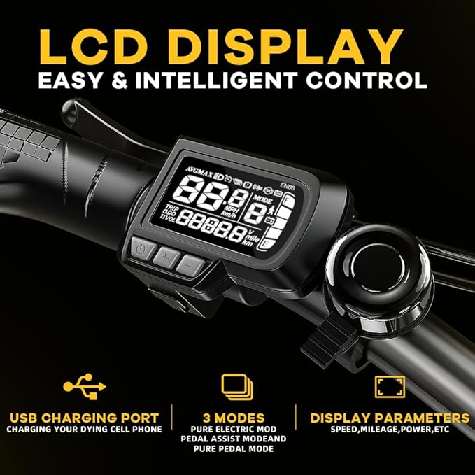 - βοΈ 7-Speed Gears & 3 Riding Modes β Adapt to any route with 7-speed drivetrain and switch easily between throttle, pedal assist, or manual mode for ultimate flexibility. Ideal for city rides or off-road adventures.