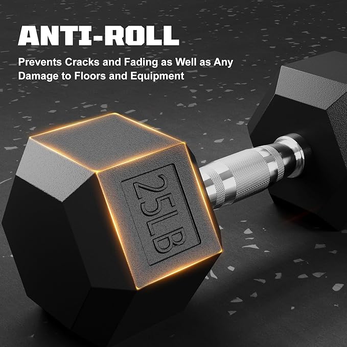 - ?�Durable Cast-Iron Construction?‘:Engineered with heavy-duty solid cast-iron cores and a sleek black powder coating, these hex dumbbells resist chipping, rust, and odor. Designed for longevity, they withstand intense workouts while maintaining a polished look for years.