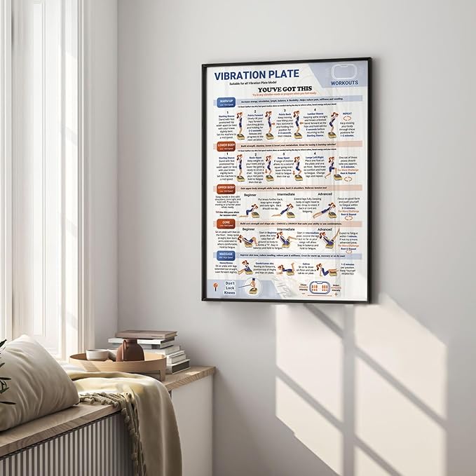 - COMPREHENSIVE GUIDE: Features 4 different vibration plate exercises with clear illustrations and detailed instructions for proper form and technique