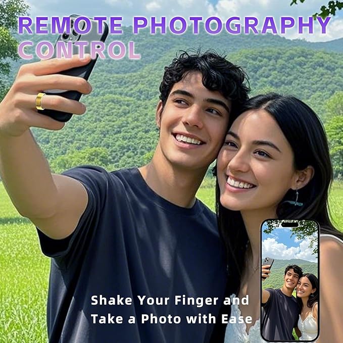 - 【Hands-Free Photography】: Capture every moment with the Anarow smart rings for women. Take photos effortlessly by shaking your finger twice to activate your phone’s camera; perfect for selfies, group shots, and spontaneous moments without extra equipment; enjoy hands-free convenience and capture stunning memories anytime