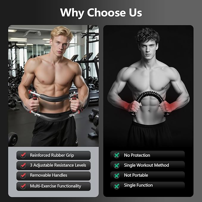 - [Portable Home Gym Equipment] The detachable chest exerciser for men transforms any space into workout area easily. This twister arm trainer outperforms standard chest trainer with its space-saving design. Take your arm workout routine anywhere while maintaining workout intensity. Ideal portable arm and chest workout equipment for travelers needing effective muscle training on the go.