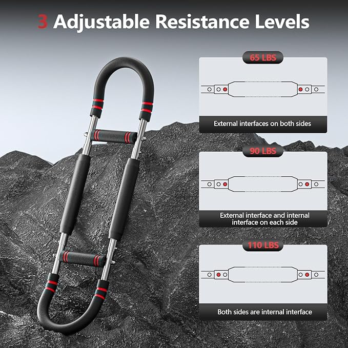 - [Adjustable Arm Chest Trainer]This professional twister arm trainer provides upper body workout machine performance with adjustable resistance(65-110 lbs). The versatile design serves as effective chest workout equipment for all fitness levels, training arm and chest muscles simultaneously. Unlike bulky exercise equipment, it delivers full strength training benefits while saving space. Perfect solution for complete arm and chest workout