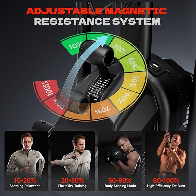 - 【Exclusive Magnetic Control Patent Design】The bike features advanced electromagnetic control technology, providing precise resistance adjustment across 8 levels, suitable for a variety of workouts from warm-up to high-intensity training. The dual-belt drive system ensures smooth and stable operation with silent, frictionless performance. Equipped with a quick-switch button, resistance can be easily adjusted during training for an uninterrupted and enjoyable ride experience