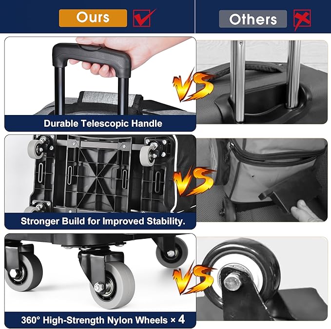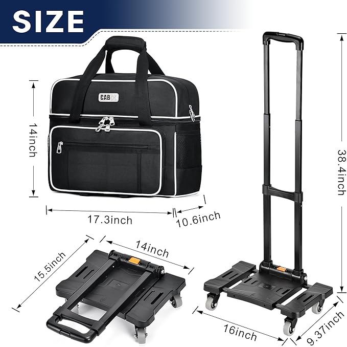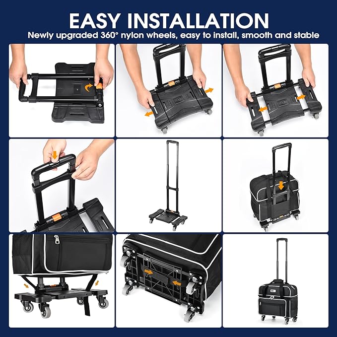 - β PREMIUM QUALITY: Newly upgraded 4-wheel folding truck with 360Β° high-strength nylon wheels, it provides a smooth, bump-free ride for your bowling ball and sneakers. Easy to fold for storage.