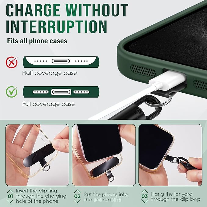 - EASY TO INSTALL & ANTI-THEFT: Quick, tool-free setup makes this anti theft phone strap a reliable choice for busy lifestyles. The universal patch won’t block charging ports, letting you charge without removing your phone strap wrist or cell phone wrist strap, ensuring your device stays secure at all times.